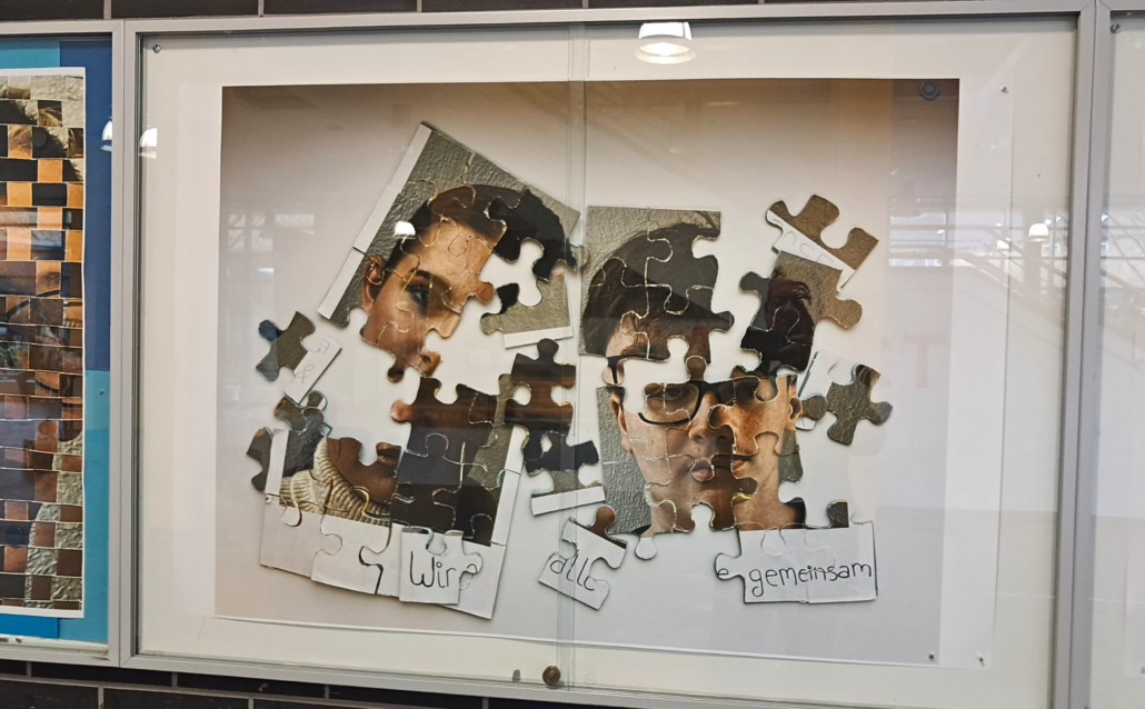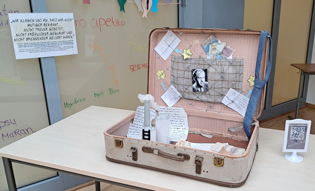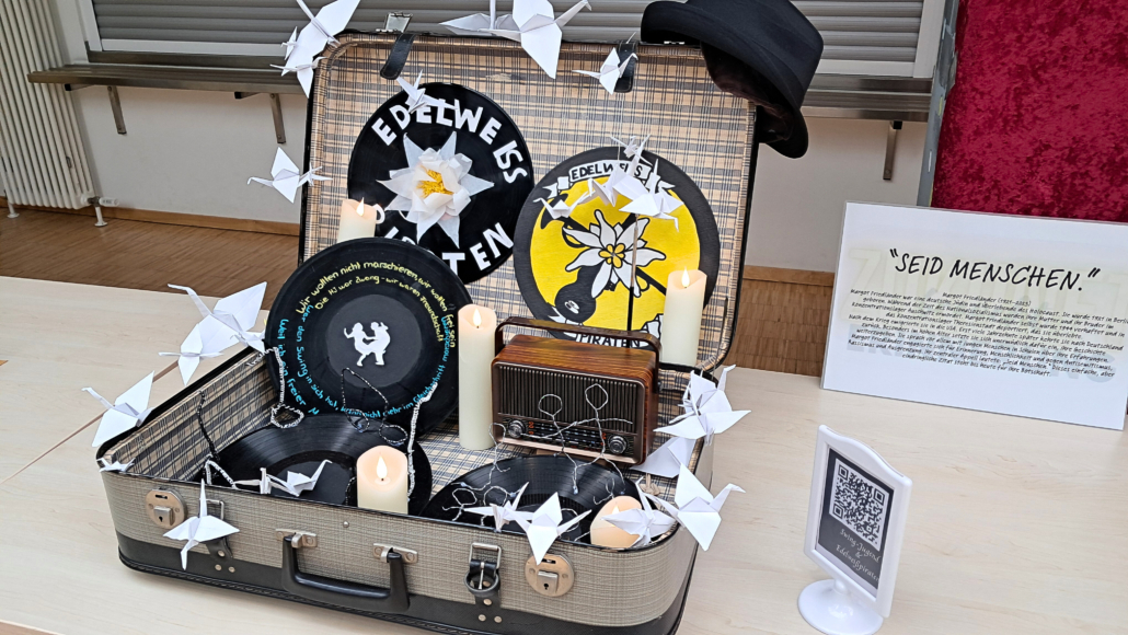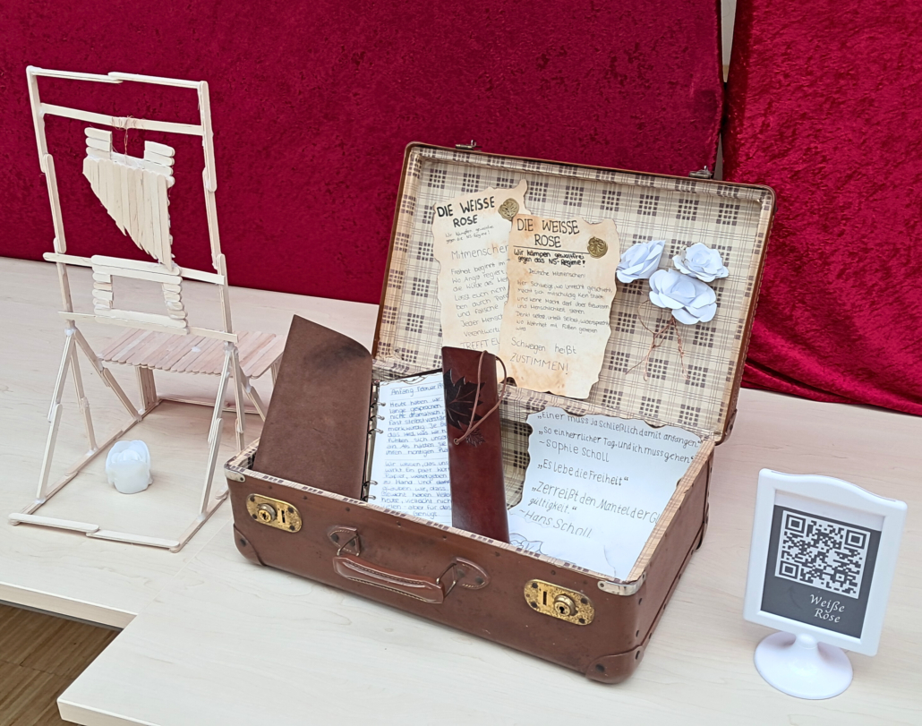 Mehr als 600 Schüler:innen und weitere Interessierte besuchten die Ausstellung in der Willy-Brand-Schule und bestaunten verschiedenste multimediale Ausstellungsstücke: vom virtuellen Rundgang durch das weltbekannte Anne-Frank-Haus in Amsterdam über Kurzfilme bis zu den eigens für die Aufstellung aufgenommenen Podcasts „Die Welle“. Mit emotionalen Installationen wie gebastelten Collagen, Zeichnungen und den „Erinnerungskoffern“ erinnerten die Schüler:innen an Opfer des NS-Regimes und berichteten von den Geschichten und Schicksalen dieser Menschen.