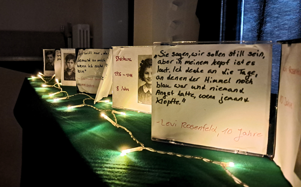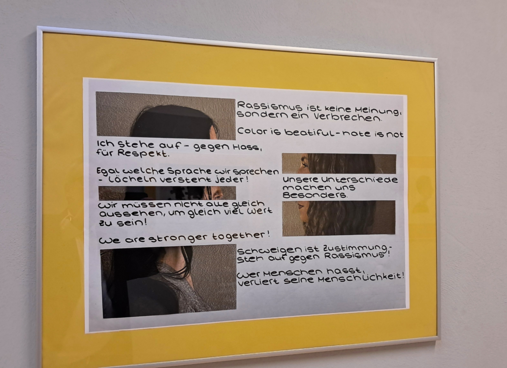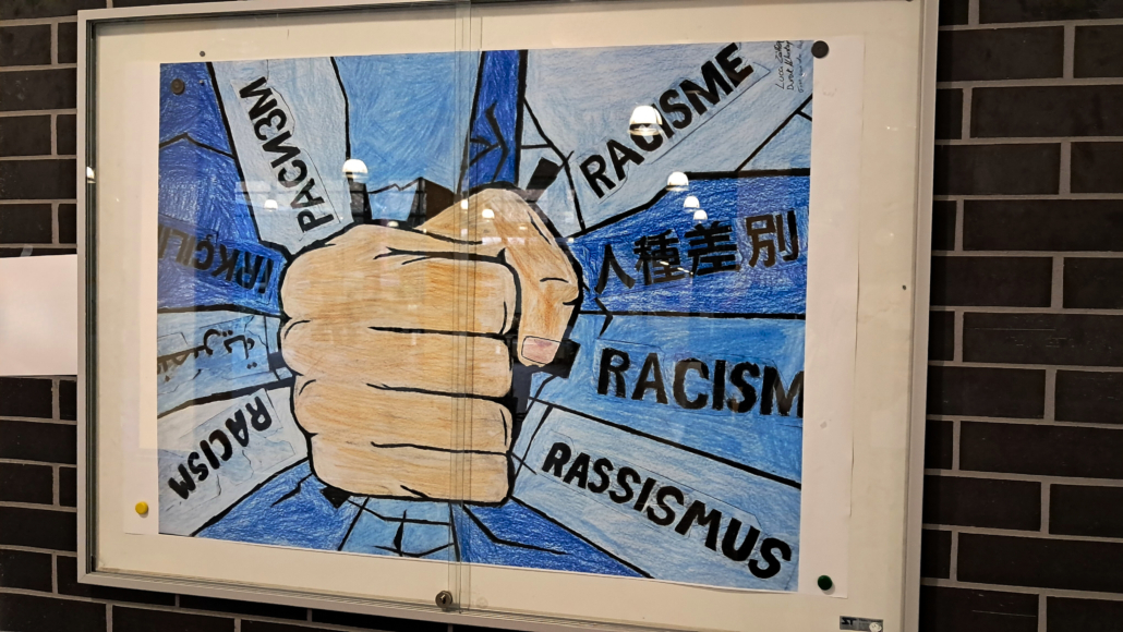 Doch die Ausstellung sollte nicht nur in die Vergangenheit blicken: Indem sich die Schüler:innen mit dem Thema „Rassismus“ auseinandergesetzt haben, eröffneten sie kritische Perspektiven auf unsere heutige Gesellschaft und was jede:r Einzelne tun kann, um „Nie wieder“, der Warnruf der Holocaust-Erinnerungsbewegung, auch in Zukunft Realität werden zu lassen.