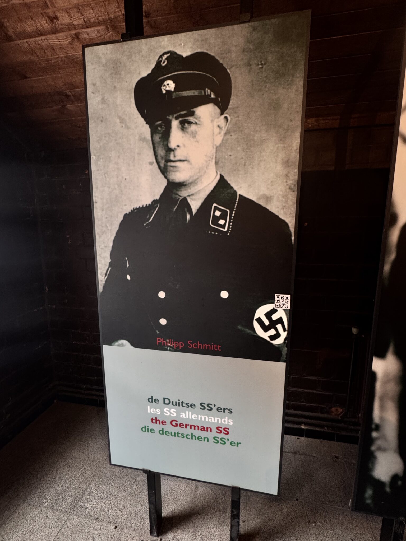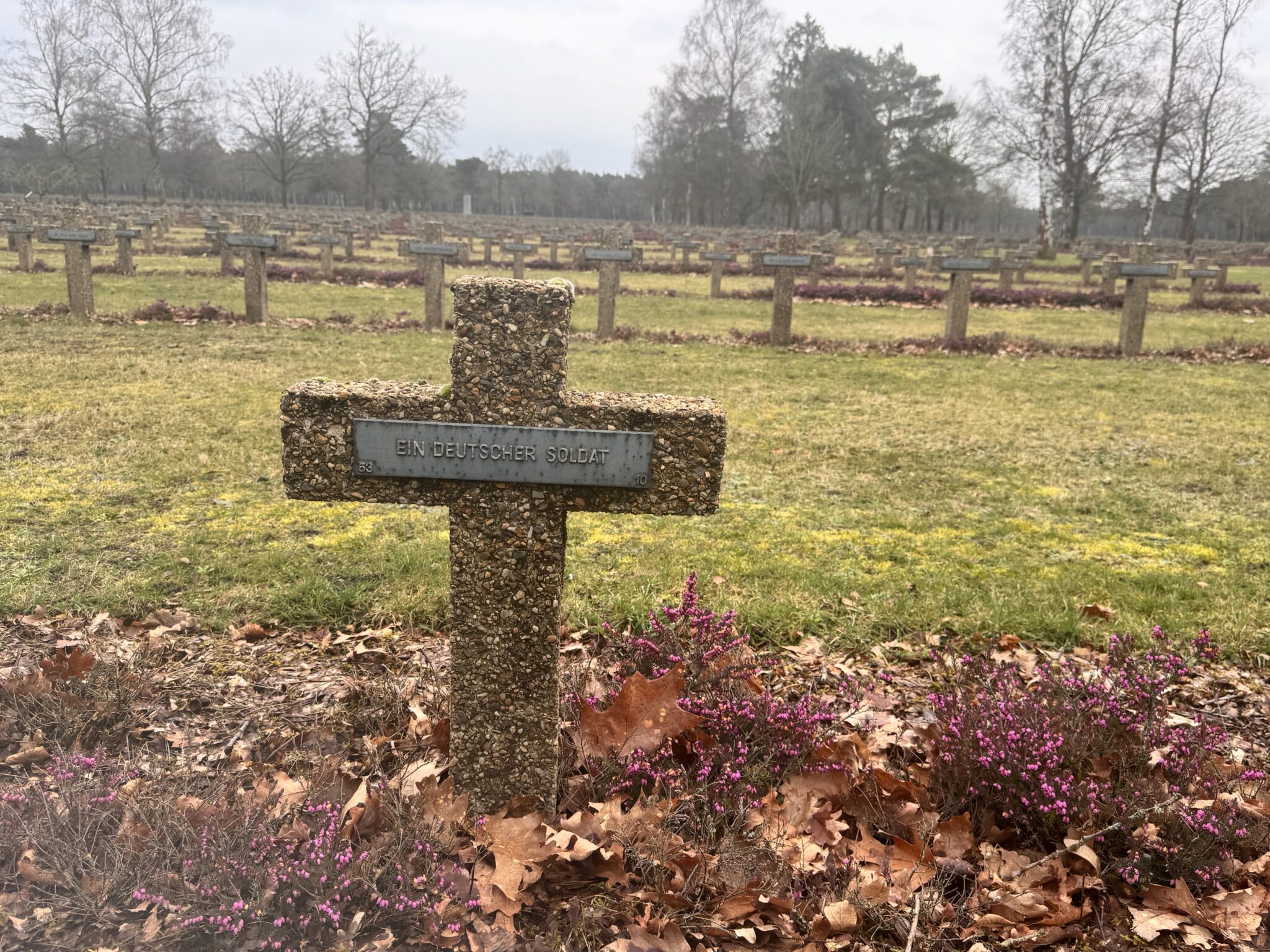 Im Anschluss an den Besuch des Durchgangslagers Breendonk fuhren die Klassen zum Soldatenfriedhof in Lommel, auf dem mehr als 39.000 Menschen begraben liegen – vor allem, aber nicht nur, deutsche Soldaten aus dem Ersten und Zweiten Weltkrieg sowie weitere Kriegsopfer. Auf dem Friedhof ruhen nicht nur Opfer von Krieg und Gewalt, sondern auch Täter – so auch der ehemalige Kommandant von Breendonk, Philip Schmitt, dessen Grabkreuz bewusst ohne Namensnennung gestaltet wurde, damit dieser Ort weder zur Pilgerstätte für Neo-Nazis noch zum Ziel von Vandalismus oder Grabschändung wird. Diese Ambivalenz des Ortes machte den Schüler*innen deutlich, dass Erinnerungskultur immer auch mit schwierigen Fragen nach Schuld, Verantwortung und einem respektvollen Umgang mit den Toten verbunden ist.